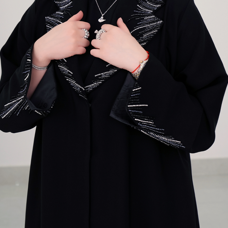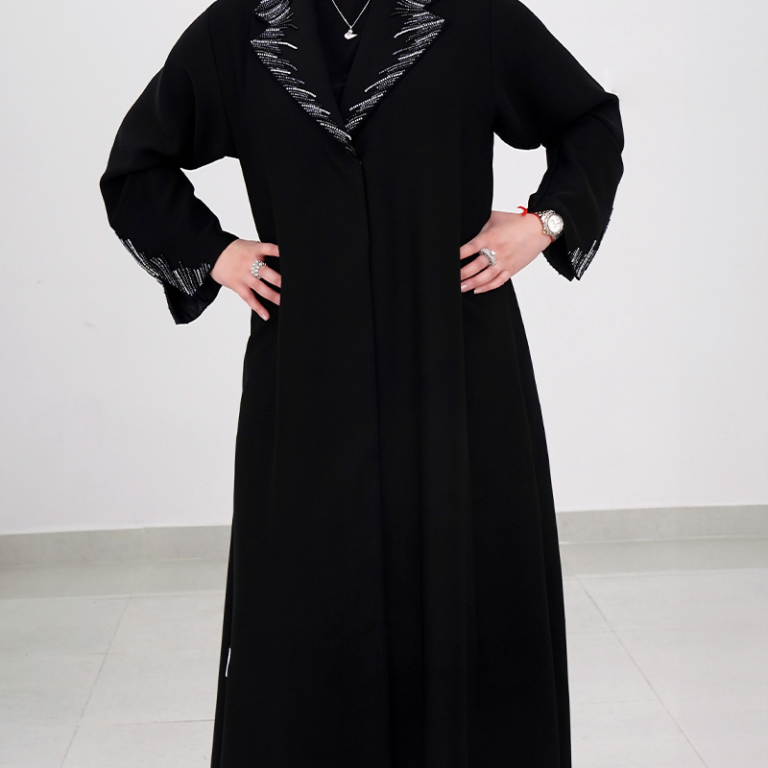 عباية سوداء فاخرة بلمسات كريستالية براقة
